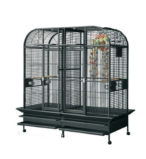 Buy Rainforest Castello II Large Double Parrot Cage Online – For SaleRainforest Castello IILarge Parrot Cage Enclosure is ideal for HugeMacaws, Cockatoos and sets of enormous or medium Parrots. The Castello parrot confine comes total with 4 feeder bowls, 2 roosts, seed catcher, raiser entryway for connecting outer home box and removable focal divider. This exceptionally roomy parrot confine is accessible in Classical completion. Appropriate for Macaws, Cockatoos, Amazons and African Grays.Castello II Twofold Enclosure is a very enormous parrot confine produce using extreme and solid fashion iron, this extraordinary enclosure includes a removable focal wall divider – really two enclosures in one – and is reasonable for all huge parrot species. Castello II sits on castors to make it simple to move and comes total with hardened steel taking care of bowls and roosts. Another component are the NEW feeder entryways and bowls. The enclosure is broiler heated and powder covered in non harmful paint making it totally protected and strong. It has a slide out plate each side for simple cleaning and the base plate are likewise removable for simple cleaning.Features4 Stainless Feeder Bowls2 PerchesCentral Sliding DividerSwing Out FeedersSlide-Out Tray with GrillCastors for easy movementBreeder Door2 Large Access Doors