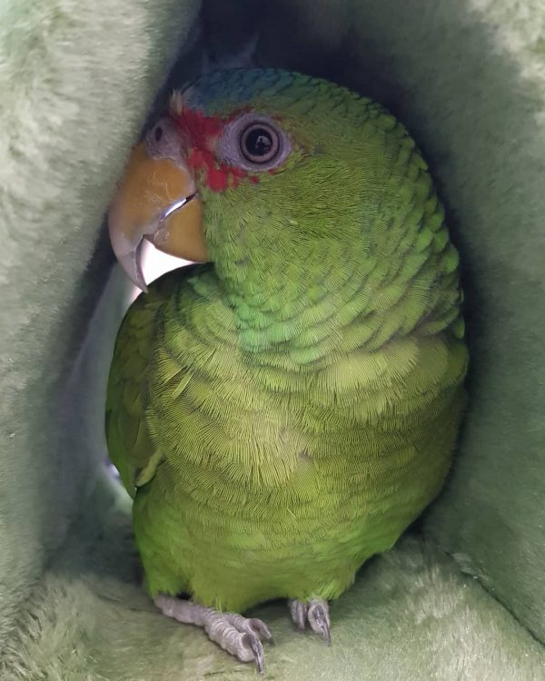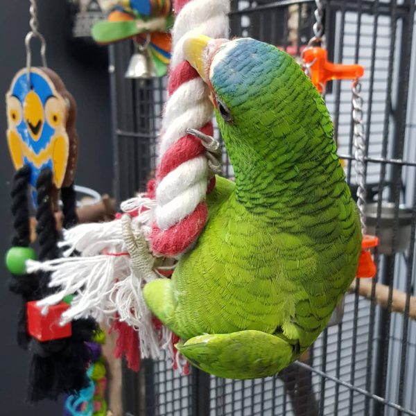 Buy Ross White Front Amazon Online For SaleRossWhite Front Amazon, at about 25 cm (9.8 in) long, is the smallest of the amazon parrots. This species is named for the bright white patch offeatherson its forehead, although the amount of white varies from individual to individual. They have mostly green plumage with some blue coloring on their outspread wings.Amazons make great pets but they are should not be the first choice for novice parrot keepers. With lots of research to ensure the Amazon is the right bird for you, they make great very affectionate, and loyal companions. They are very intelligent and need a lot of time and commitment from their owners to keep them happy.Amazons are extremely intelligent and playful birds that love being the center of attention. They need lots of affection and time with their owners, and they are curious, and athletic and seem to enjoy entertaining their owners with clownish antics. For this reason, you must ensure you get the biggest possible cage you can fit in your house and that’s in your budget. However, they are also consider somewhat moody and can become fairly aggressive if not trained and handled properly from a younger age.